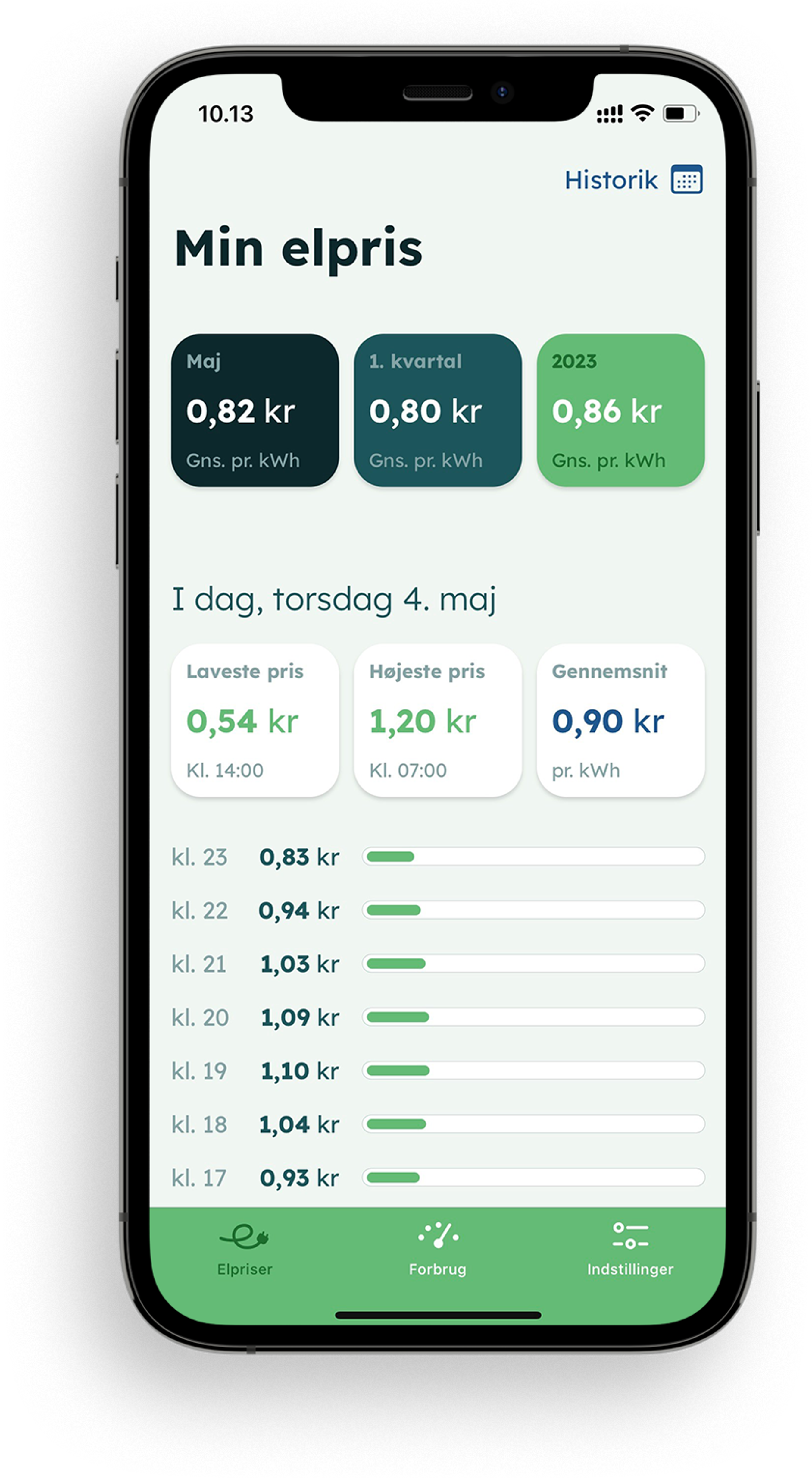 • Viser aktuelle elpriser
